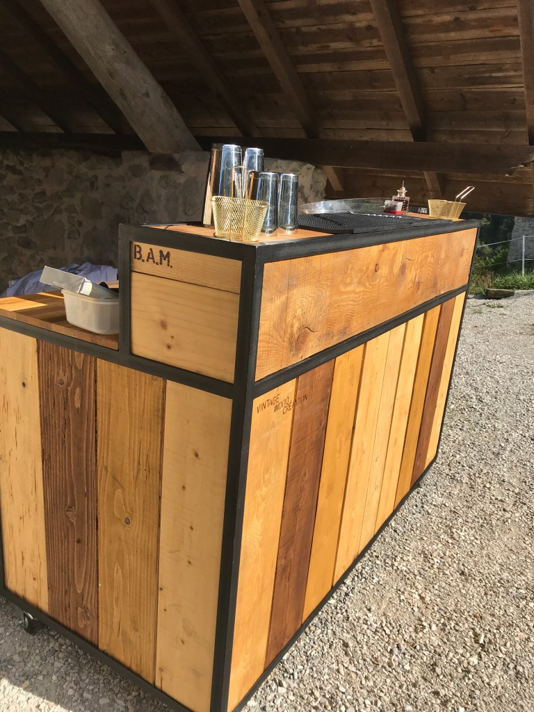 Un bar avec une station de travail pour un et l’autre qui permet d’adapter la station pour deux bartenders pour gérer au mieux le flux. Nous gérons des événements de 40 à 500 personnes voire plus.